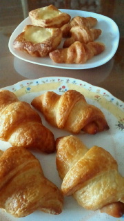今週は 頑張って 「クロワッサン」を作り ウィンナーを入れたり カスタードをのせたり~~ 今日は 「ミルクフランス」 パンに 挟む「クリーム」が また美味しいので やみつきになる パンなのです